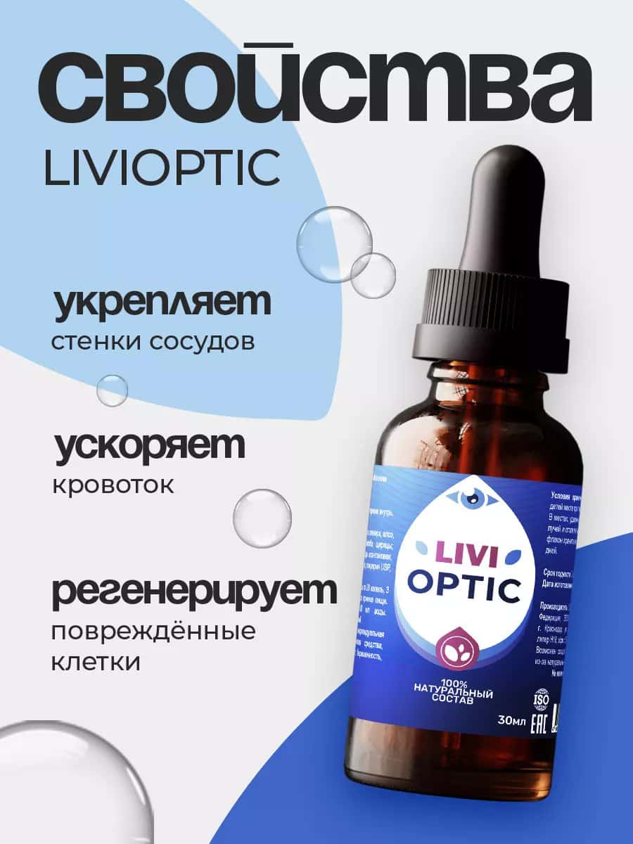 Ливиоптик — натуральный комплекс для защиты глаз и улучшения зрения. Снимает усталость, улучшает кровоток, предотвращает возрастные изменения.